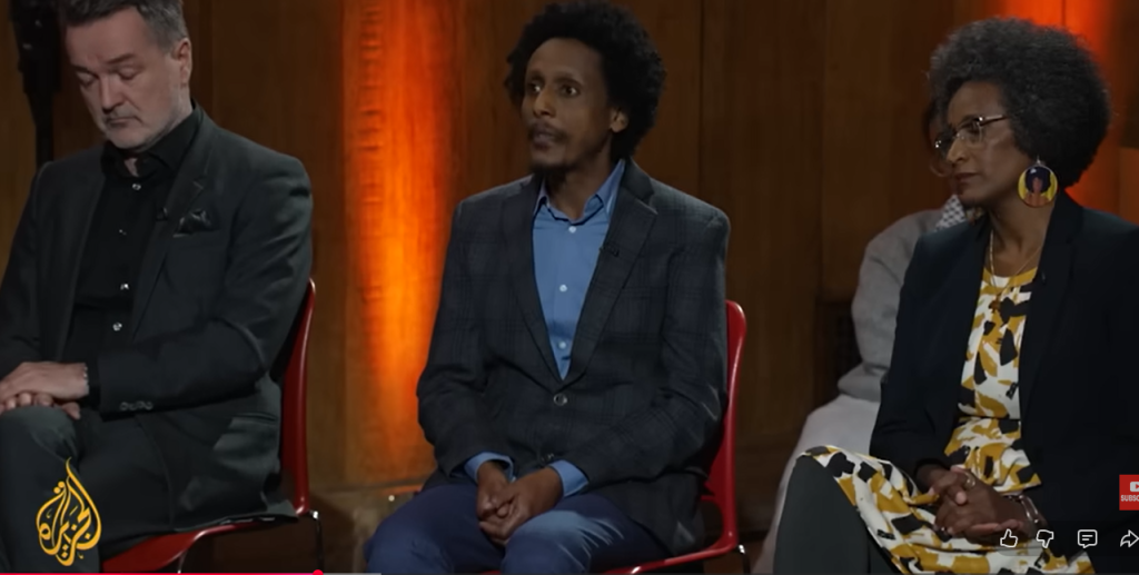 Hasan, Tsedale, and Tronvoll played their assigned roles perfectly. Hasan, whose respectful tone for Western leaders vanishes when confronting African ones, relentlessly debased Abiy, tossing around labels like “imperialist,” “appointee of God,” and “warmonger” without challenge. He treated Getachew not as a guest but as a hostile witness, weaponizing his past wartime statements to corner him. The goal was clear: render Getachew incapable of defending Ethiopia or its Prime Minister, because his own past as a TPLF spokesman was used as a gag.
